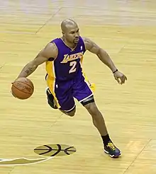 Derek Lamar Fisher (born August 9, 1974) is an American basketball coach and former player who is the head coach and the general manager for the Los Angeles Sparks of the Women's National Basketball Association (WNBA). Fisher played professionally in the National Basketball Association (NBA) for 18 seasons, spending the majority of his career with the Los Angeles Lakers, with whom he won five NBA championships. He also played for the Golden State Warriors, Utah Jazz, Oklahoma City Thunder, and Dallas Mavericks. He has also served as president of the National Basketball Players Association (NBPA).