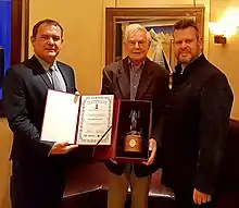 He was knighted in 1994[7] and has also been made a member of the Danish Order of the Dannebrog.