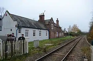Desford railway station was a railway station in Leicestershire, England on the Leicester and Swannington Railway, which later became part of the Midland Railway's Leicester to Burton upon Trent Line. The original station opened on 18 July 1832; originally named Desford Lane, it was renamed Desford by 26 April 1833.[1] This station was closed on 27 March 1848, being replaced by a new station, also named Desford, sited 135 metres (148 yd) to the west of the original.[1] The station was about 0.6 miles (1 km) northeast of Desford village, close to the hamlet of Newtown Unthank.