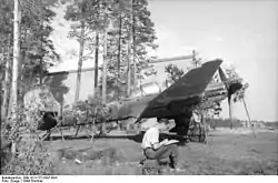 The detachment consisted of some 70 airworthy aircraft to support the 200 strong Finnish force,[2] but its operational strength varied due to losses, additions and troop movements. The unclear structure is partly explained by the Luftwaffe replacement programs, where older Junkers Ju 87 "Stuka" dive bombers were replaced by Focke-Wulf Fw 190 jabo's (fighter-bombers).