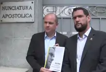 Rafaela Requesens and the Requesens family organized several marches, worship services, and protests demanding the freedom of Juan.[107][108] Requesens' wife and two young children remained reclusive for many of these, but did attend a mass held in Guayana.[109] Rafaela also said on 29 August that Juan's daughter asks her where he is.[110] The Venezuelan activist Lilian Tintori joined forces with the family in protests.[111]
