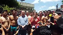 The release of the prison video sparked protest, with Venezuelans taking to the streets wearing underwear in a show of support for Requesens, whose stained underwear shown in the video raised concern.[102] One 68-year-old woman involved in a protest said that she supported Requesens because she knows he's "a good clean kid, from an honourable family".[103] By 16 August, there were peaceful protests nationwide, joined by members of most political parties, as well as groups like Juntos por la Libertad ("Youths for Freedom"), Sin Mordaza (English: Unmuzzled), and Las Piloneras (English: The newsmongers).[103][104] A group of young people in Mérida formed a blockade, preventing traffic from moving along the main viaduct across Campo Elías.[105] A large protest march was held on 25 August, claiming to be bigger than the 2017 Venezuelan protests.[106]