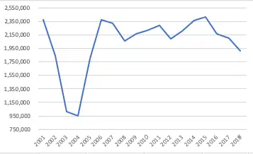 | 2018 | 1,915,173 | 1,952,505 | DTC[28] |