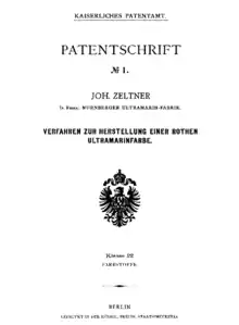 - DE patent 1, Johannes Zeltner, "Verfahren zur Herstellung einer rothen Ultramarinfarbe", issued 1877-07-01, assigned to Nurnberger Ultramarin-Fabrik