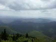 Devil's Courthouse is a mountain in the Appalachian Mountains of western North Carolina in the United States of America.[1] The mountain is located at the Western edge of the Pisgah National Forest about 10 miles (16 kilometers) northwest of Brevard and 28 miles (45 kilometers) southwest of Asheville. Located at milepost 422.4 (kilometer 679.8 km) of the Blue Ridge Parkway, the Devil's Courthouse has a moderate/strenuous trail climbing a half mile to its peak where panoramic views can be seen.