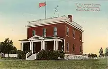 The first post office was founded November 15, 1882, and originally named Creelsburg.[8] It was founded by Lieutenant Heber M. Creel, a West Point graduate and topographical engineer stationed at nearby Fort Totten. After resigning from the U.S. Army, he surveyed and established the town site.