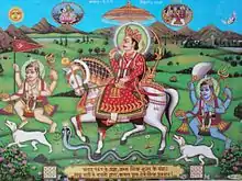Devnarayan Ki Par or Devnarayan Ki Phad (Gujari or Rajasthani:देवनारायण की फड़) are cloth paintings which depict the legend of Devnarayan, a medieval hero venerated as a folk-deity. Traditionally, they are used to accompany a ritual in which the heroic deeds of Devnarayan are sung or recited by priests. Devnarayan is worshipped as an incarnation of the Hindu god Vishnu, mostly in Rajasthan and Madhya Pradesh. According to the legend, he was incarnated in Vikram Samvat in 968 as the son of Gurjar warrior Sawai Bhoj Bagaravat and his wife Saadu Maata Gurjari.[1]