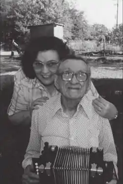 The duo would later record for Alan Lomax, compiled as "folk" field recordings and would be the only Cajun pioneers to do so from the early period.[9][10] Two songs are recorded, an early version of Jolie Blonde called "La Fille De La Veuve"[11] and "Viens donc t'assis sur la croix de ma tombe".[12] Didier would record a vocal called "Mes Camarades Il Faut Parier" during the Lomax session.[13]
