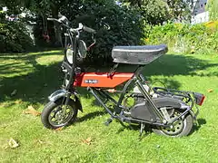 The founder of the company, Rosario Di Blasi, began development of a folding scooter in 1952, which by 1968 had evolved into a Zanetti-powered folding tricycle called the DIBLA 7 that was shown at the Turin Auto Show as a prototype. Finally in 1974 Di Blasi began production of a folding moped with a Franco Morini motor and single-speed transmission called the R2 (also known as the "Paperino"). In 1979 the model R7 replaced the R2 and featured an engine of Di Blasi's own design as well as a multi-speed transmission. This moped has been continuously improved and is still in production as the R7E. It has been used by the Polizia Stradale, the Traffic Police division of the Italian National Police, aboard their helicopters.[1][2] The R7 is sold by Di Blasi of America as the "Express."[3] It is also used worldwide by a number of different "chauffeur" companies, who will drive it to meet the customer, fold it up and put it in the trunk of their car, and drive the customer wherever they need to go, such as home from a bar or party. One such company, Superbob, serves part of the Netherlands.[4] In the southern US, Zingo Transportation provides this service. In Australia the Di Blasi R7 has been imported, sold and run as part of their designated chauffeur service by Scoot2you Personal Chauffeurs originally on the Gold Coast and then in Brisbane and Melbourne and shortly in Sydney as part of their growing Franchise.