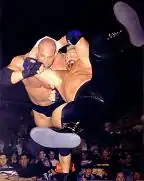 Shortly after Slamboree, Page entered into an alliance with fellow New Jerseyan Bam Bam Bigelow and won the WCW World Tag Team Championship from then champions Perry Saturn and Raven on May 31, thanks to Chris Kanyon turning heel on former ally Raven and costing the team the championships. Page, Bigelow, and Kanyon became known as the Jersey Triad and through their alliance with WCW "President for Life" Ric Flair took advantage of the Freebird Rule in their subsequent matches (meaning any combination of the three could defend the championship). The Triad held the titles until June 10, when Saturn and Chris Benoit (now stablemates in The Revolution) took the title from them. They regained the belts at The Great American Bash three days later, and lost them to Harlem Heat at Road Wild in August.[1] Later that night, Chris Benoit defeated Diamond Dallas Page to retain the United States title.[1] The group broke up shortly thereafter and Page began feuding with Hogan again, joining Sid Vicious and Rick Steiner in a team effort to take on Hogan, Sting, and Goldberg. Soon after that feud ended Page turned into a hero again and feuded with both Kanyon and Bigelow before the year ended.
