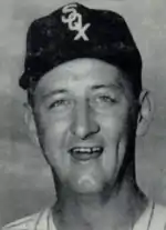 Donovan made the White Sox out of spring training in 1955, as a reliever.[11] However, he was quickly added to the rotation after Bob Keegan, an All-Star who had won 16 games with the White Sox the year before, developed a bone spur on his heel.[12] He finally got his first career win on April 29, in a four-hit shutout of the Boston Red Sox.[13] At the plate, he hit his first career home run July 3 against Hall of Famer Bob Lemon in a 14–9 loss to the Cleveland Indians.[14] With a 10–2 record at the All-Star break, Donovan returned to Milwaukee as a member of the American League (AL) All-Star Team, though he did not pitch in the game.[1][11] His record was 13–2 on July 20; Donovan lost his next two starts in July, then suffered appendicitis and missed a month recovering.[11][1] He won his first start back on August 21, then went on a five-game losing streak, posting an 8.07 ERA over that span.[11] In his final start of the year, September 24, he threw a five-hit shutout against the Kansas City Athletics.[15] Donovan finished his first full season in Major League Baseball (MLB) with a 15–9 record, a 3.32 ERA, five shutouts, 88 strikeouts, and 48 walks in 187 innings.[7]