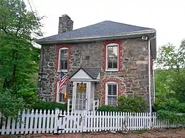 The Dickeyville Historic District is a National Register of Historic Places-listed community located just inside the western edge of Baltimore City, Maryland, near the intersection of Interstates 70 and 695 and adjacent to Kernan Hospital. A small community of about 140 homes and a historic mill, the village is on the banks of the Gwynns Falls and lies at the start of the Gwynns Falls Trail, a 15-mile (24 km) walking and biking trail that is part of the Chesapeake Bay Gateways Network. The village includes two main roads, Wetheredsville Road and Pickwick Road, and three smaller lanes, Hillhouse Road, Tucker Lane and Sekots Road.