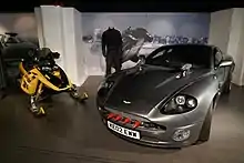 Gadgets and other props from every previous Bond film and stored in Eon Productions' archives appear in Q's warehouse in the London Underground. Examples include the jetpack in Thunderball and Rosa Klebb's poison-tipped shoe in From Russia with Love.[13] Q mentions that the watch he issues Bond is "your 20th, I believe", a reference to Die Another Day being the 20th Eon-produced Bond film.[14] In London, the Reform Club was used to shoot several places in the film, including the lobby and gallery at the Blades Club, MI6 Headquarters, Buckingham Palace, Green Park, and Westminster. Jökulsárlón, Iceland was used for the car chase on the ice. Four Aston Martins and four Jaguars, all converted to four-wheel drive, were used (and wrecked) filming the sequence. A temporary dam was constructed at the mouth of the narrow inlet to keep the salty ocean water out and thus allow the lagoon to freeze.[15] Additional chase footage was filmed at Svalbard, Norway, Jostedalsbreen National Park, Norway, and RAF Little Rissington, Gloucestershire.[9] Manston Airport in Kent was used for the scenes involving the Antonov cargo plane scenes.[16] The scene in which Bond surfs the wave created by Icarus when Graves was attempting to kill Bond was shot on the blue screen. The waves, along with all the glaciers in the scene are computer-generated.[17]