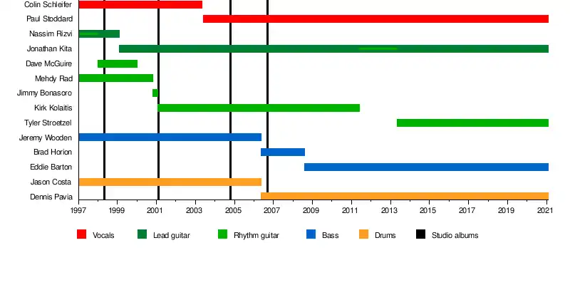 After the departure of guitarist and founding member Nassim Rizvi, his position was temporarily filled by a number of friends of the band including Buz McGrath and Ken Susi of the band Unearth. Jonathan Kita would be named the permanent replacement on lead guitar in February 1999.