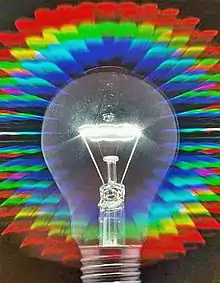 The wavelength dependence in the grating equation shows that the grating separates an incident polychromatic beam into its constituent wavelength components, i.e., it is dispersive. Each wavelength of input beam spectrum is sent into a different direction, producing a rainbow of colors under white light illumination. This is visually similar to the operation of a prism, although the mechanism is very different.