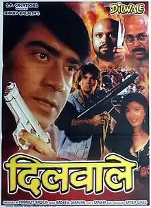 Dilwale (transl. The big-hearted) is a 1994 Indian Hindi-language romantic action film starring Ajay Devgn and Raveena Tandon with Suniel Shetty in a very special role. Originally Divya Bharti signed for the role of Sapna, but because of her sudden demise, Tandon was selected for the role. It was released on 4 February 1994[1] and had a runtime of 180 minutes. Dilwale went on to become one of the highest grossing Indian films of 1994.[2] Suniel Shetty got nominated for the Filmfare Best Supporting Actor Award.