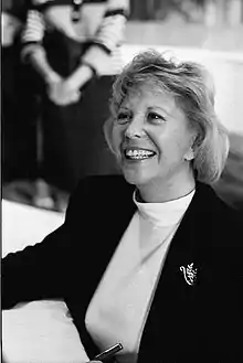 In both Cathedral City and Rancho Mirage, California, streets are named after her. Her hometown of Winchester, Tennessee, honored her with Dinah Shore Boulevard.[23] In 1989, she received the Golden Plate Award of the American Academy of Achievement.[24][25][26] In 1991, she was inducted into the Television Hall of Fame. In 1996, a Golden Palm Star on the Palm Springs Walk of Stars was dedicated to her.[27]