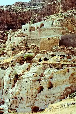 The fourth Catholic patriarch Shemʿon IX Denha (1581–1600), under pressure from his Nestorian rival Eliya VII, abandoned the western centres of Amid and Mardin which had supported the union with Rome, and governed his church from the remote monastery of Mar Yohannan in the Salmas district. During his own lifetime he retained the loyalty of the western bishops, and strengthened the hierarchy he had inherited by creating several new dioceses beyond the western districts. His supporters, mentioned in a letter of 1580 to pope Gregory XIII shortly after his consecration, included not only the western bishops Eliya of Amid, Hnanishoʿ of Mardin, Joseph of Seert, Yohannan of Atel and Joseph of Gazarta, (earlier loyal to Eliya VI), but also the metropolitans Joseph of Salmas, Sargis of Jilu, Hnanishoʿ of Shemsdin, ʿAbdishoʿ of 'Koma', three men (two named Denha and one named Addaï) listed merely as metropolitans, and the bishop Yohannan of 'Chelhacke'. 'Koma' was probably the monastery of Mar ʿAbdishoʿ near the village of Komane in the ʿAmadiya district, while 'Chelhacke' may be a deformation of Slokh (ܣܠܘܟ), the Syriac name for Kirkuk.[4]