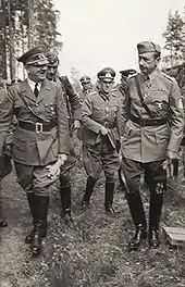 Joseph Stalin controlled the foreign policy of the Soviet Union, with Vyacheslav Molotov as his foreign minister.[65][66] Their policy was neutrality until August 1939. The Soviet military had conversations in Moscow with a high level military delegation from Britain and France. The Soviets demanded an agreement from Poland to allow Soviet troops to enter that country to defend it against Germany, but Poland refused. Those talks went nowhere.[67] On August 21, Hitler made friendly proposals to Stalin that led to the Molotov–Ribbentrop nonaggression pact on August 23 that stunned the world. The Soviets achieved friendly relations with Germany in order to carve up Key elements of Eastern Europe, especially Poland and the Baltic states. Following the pact, Germany invaded and quickly defeated Poland; then the Soviets invaded and took control of its preassigned areas of eastern Poland. Both invaders systematically decimated the Polish elite. In the 1940 Katyn massacre, the NKVD (Soviet secret police) executed 22,000 Polish military and police officers and civilian intelligentsia.[68]