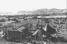 After arriving in Pohang on 4 August, the Air Support Section assumed control of all close air support aircraft for 1st Provisional Marine Brigade engaged on the Pusan perimeter.[9] For the Inchon invasion, MTACS-2's Air Support Section disembarked at Inchon in support of the 1st Marine Division. When the 1st Marine Division sailed for Wonsan, the squadron's Air Support Sections sailed with them. The Air Support section was with the 1st Marine Division from November 27 - December 10, 1950 during the Battle of Chosin Reservoir. They controlled the flow of aircraft in support of the division and also manned a portion of the western perimeter at Hagaru-ri where the Division Headquarters was located.[10]