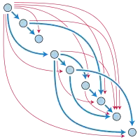 In a citation graph the vertices are documents with a single publication date. The edges represent the citations from the bibliography of one document to other necessarily earlier documents. The classic example comes from the citations between academic papers as pointed out in the 1965 article "Networks of Scientific Papers"[52] by Derek J. de Solla Price who went on to produce the first model of a citation network, the Price model.[53] In this case the citation count of a paper is just the in-degree of the corresponding vertex of the citation network. This is an important measure in citation analysis. Court judgements provide another example as judges support their conclusions in one case by recalling other earlier decisions made in previous cases. A final example is provided by patents which must refer to earlier prior art, earlier patents which are relevant to the current patent claim. By taking the special properties of directed acyclic graphs into account, one can analyse citation networks with techniques not available when analysing the general graphs considered in many studies using network analysis. For instance transitive reduction gives a new insights into the citation distributions found in different applications highlighting clear differences in the mechanisms creating citations networks in different contexts.[54] Another technique is main path analysis, which traces the citation links and suggests the most significant citation chains in a given citation graph.
