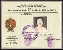During the Sukarno regime in 1958, all Chinese Indonesians were required to state their intent to stay Indonesian citizens[lower-alpha 1] and in 1959 Chinese who were not citizens were forbidden from doing business outside of urban areas.[lower-alpha 2][9] The discrimination continued into the New Order. Chinese Indonesians were urged to choose Indonesian-sounding names,[lower-alpha 3][10] forbidden to practice their traditions publicly,[lower-alpha 4][11] and required to obtain extra proof of citizenship.[12] In total, forty five directly or indirectly discriminatory laws were passed during the New Order.[13] Although the majority of this legislation was rescinded during the presidencies of Abdurrahman Wahid and Megawati Sukarnoputri,[14] instances of enforcement continued.[15]