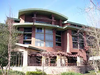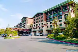 Disney's Grand Californian Hotel & Spa (also known as the Grand Californian) is a hotel located at the Disneyland Resort in Anaheim, California. The hotel was constructed as part of a major expansion of the Disneyland Resort in 2001. It was built by The Walt Disney Company and has been operated by The Walt Disney Company since its inception. This luxury hotel is designed to celebrate the early 20th Century Arts and Crafts era, showcasing the once-dominant architectural style of California. It also features a Disney Vacation Club wing that opened in September 2009. The hotel has a private entrance to Disney California Adventure Park. In 2017, Disney completely remodeled the rooms, along with the lobby.
