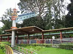 In April 1958, Tomorrowland Station, a new station with a futuristic theme and consisting of a covered platform with no station building, was built in the Tomorrowland section for the DRR.[49] The station was updated in 1998 as part of a redevelopment of the Tomorrowland section.[49]