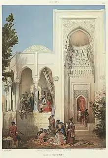 The perimeter around the square-shaped yard of the ceiling, open array galleries are located on the colloquium, which is similar to the rotunda. The courtyard's gallery is lower than the Divan's sign and is a unique backdrop of the eight-point Roton's rigid stylobate.[4]