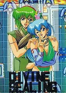 Divine Sealing (ディヴァインシーリング, Divain Shiiringu) is an unlicensed Sega Mega Drive eroge developed by Studio Fazzy. The game was a vertical scrolling shooter with a sci-fi/fantasy hentai theme: players destroyed enemies and end level bosses in shoot 'em up fashion and would then be treated to scenes where the damsels in distress would be completely stripped of their clothing.
