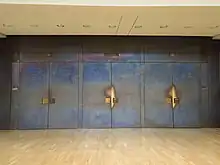 Historically, and often still today, members are literally divided into physically separate groups.[1] This was the method used in the Roman Senate (vote per secessionem), and occasionally in Athenian democracy. Westminster system parliament chambers have separate division lobbies for the "Ayes" and "Noes" to facilitate physical division. In several assemblies, a division bell is rung throughout the building when a division is happening, in order to alert members not present in the chamber. In the United Kingdom, division bells are also present in a number of bars and restaurants near the Palace of Westminster in order to call members to vote who may be outside the building.[2]