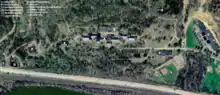 Shortly after the hospital's closure, several proposals were made to reuse the facilities; the leading bid was St. John's General Hospital which planned to use the geriatric and infirmary buildings to house a 200-bed nursing home and Reed Hall as independent senior-citizen living. Several proposals were also made to upgrade Dixmont's sewage treatment plant for use with Kilbuck Township. However, none of these plans came to fruition. From 1985 to 1988, Holy Family Institute leased the Cammarata building as a temporary home after their facility was damaged by fire.[4] In the late-1980s, plans were set in place to build a county jail on the site of Dixmont. However, the proposal was unpopular with local residents and the plan was canceled in 1989. By 1999, time and many fires had left the crumbling building useless, and the State sold the 407-acre (165 ha) property to a private owner. In 2005, a local developer made an agreement to convert the 75 acres (30 ha) of that land that contained most of the buildings and demolition began in preparation for a shopping center that would be anchored by a Walmart Supercenter. Subsequent excavation destabilized the hillside and landslides covered Pennsylvania Route 65 and the Pittsburgh Line railroad tracks on the Ohio River side, shutting them both down for weeks. After numerous complaints by Kilbuck Township residents for fear of another collapse, due to the instability of the "rebuilt" landslide as well as interest in the nearby borough of Economy to build a Walmart in order to help revitalize the dilapidated Northern Lights Shopping Center located next door to that proposed Walmart site, Walmart decided not to build on the property on September 26, 2007, and the land will be left to return to nature.[5][6]
