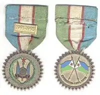 The 1st Battalion of Somali Skirmishers, formed in 1915 from recruits from the French Somali Coast, was a unit belonging to the French Colonial Army. They distinguished himself during the First World War, notably during the resumption of Fort Douaumont, Battle of Verdun in October 1916 alongside the Régiment d'infanterie-chars de marine and the Second Battle of the Aisne in October 1917. In May and June 1918, they took part in the Third Battle Of The Aisne and in July in the Second Battle of the Marne. In August and September 1918, the Somali battalion fought on the Oise front and in October 1918 he obtained his second citation to the order of the army as well as the right to wear a Fourragère in the colors of the ribbon of the Croix de guerre 1914–1918. Between 1915 and 1918, over 2,088 Djiboutians served as combat in the First World War. Their losses are estimated at 517 killed and 1,000 to 1,200 injured. During the Second World War a battalion of Somali skirmishers to participate in the battles for the liberation of France, it participated in particular in the fighting at Pointe de Grave in April 1945. On April 22, 1945, General de Gaulle awarded the Somali battalion a citation to the army and decorated the battalion's pennant in Soulac-sur-Mer. The Somali battalion is dissolved on June 25, 1946.