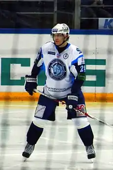 Dmitri Nikolaievich Korobov[1] (Belarusian: Дзмітрый Мікалаевіч Корабаў; born 12 March 1989), is a Belarusian professional ice hockey defenceman. He currently plays with Salavat Yulaev Ufa of the Kontinental Hockey League (KHL).