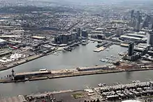 Docklands (also known as Melbourne Docklands to differentiate it from London Docklands) is an inner suburb of Melbourne, Victoria, Australia, 2 km (1.2 mi) west of the city's Central Business District (CBD). Its local government area is the City of Melbourne. At the 2016 Census, Docklands had a population of 10,964.[1] Primarily a waterfront area centred on the banks of the Yarra River, it is bounded by Wurundjeri Way and the Charles Grimes Bridge to the east, CityLink to the west and Lorimer Street across the Yarra to the south.