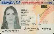 - The main section indicates last names (all Spanish citizens are required to have two last names), first name, sex, nationality and date of birth. The serial number includes a security feature, expiry date and signature of the cardholder
