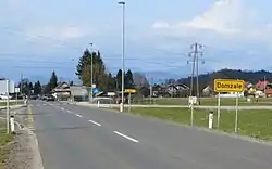 listen);[2] German: Domschale)[3] is a town and the seat of Municipality of Domžale. The town lies near the foothills of the Kamnik Alps and is crossed by the Kamnik Bistrica River. It includes the hamlets of Zgornje Domžale (pronounced [ˈzɡóːɾnjɛ dɔmˈʒàːlɛ];[4] German: Oberdomschale),[3] Spodnje Domžale (pronounced [ˈspóːdnjɛ dɔmˈʒàːlɛ];[5] German: Unterdomschale),[3] and Študa.[6] Domžale is known today for its small businesses, agriculture, and light industry.