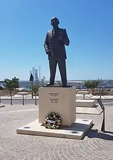 In May 2018, another statue of Mintoff was unveiled in Castille Square in Valletta directly opposite the office of the Prime Minister.