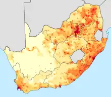 In 2012 South Africa was called the "rape capital of the world" when less than 1% of rapes that occur are reported to the police.[1] The South African Medical Research Council did an electronic anonymous survey, interviewing just over 1,700 men, that found that one in four males had raped; 73% of those men surveyed had raped before the age of 20.[11] Within rural South Africa there is a higher rate of HIV between partners. In Limpopo, a team of researches traveled to rural villages to implement a three-part trial to test if intervention within relationships that had domestic violence and/ or HIV prevalence in the home.[12] The homes where the researchers just assisted with the problems of domestic violence were able to reduce the prevalence by 55%, but did not effect those who had unprotected sexual intercourse with a non-spousal partner. Although the rate of domestic violence within these small villages did get reduced; the rate of those having unprotected intercourse after being exposed, and diagnosed with HIV, did not go down. According to reports by the U.N., South Africa has one of the highest rates of HIV/AIDS in the world.[13]