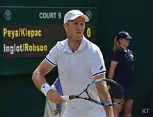 Dominic Inglot (/ˈɪŋɡlɒt/ ING-glot;[2] born 6 March 1986) is a British professional tennis player and a Davis Cup champion. A doubles specialist; he has made the final of twenty six ATP World Tour events, winning fourteen, including the Citi Open and Swiss Indoors partnering Treat Huey, and has also made the final of eight ATP Challenger Tour events winning five of them. He is the current British No. 4 in doubles. Also known as 'Dom the Bomb' due to his menacing serve.[3]