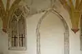 The most significant interior architectural monument is the inner wall of cloister. On the wall of cloister there are visible wall-paintings, remains of former portals, niches and windows with preserved metal division which are wall up nowadays. Some parts which are surrounded by the arch and the bracket contain both the right window and the portal beside it. The rest of the field was decorated by wall-paintings.
