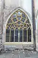 The exterior of monastery unlike the church is marked by numerous, mainly Baroque, reconstructions. Reconstructions are visible on the facade chiefly on the roof extension with noticeable baroque elliptic windows. Original gothic tower with the bulb dome was completely rebuilt in Baroque style except one Gothic window which remained on the first floor. All exterior portals are also Baroque apart from the Gothic one in the south-western part of the monastery´s wall. The arches of the cloister and the first floor towards the heavenly court are maintained in the Gothic style. The tracery of windows isn’t original; windows in two arches of cloister and neogothic extension in court have neogothic division. The first lanced arch consists of small saddle portal; tapered tracery with three and four-leaves, is decorated by another tracery in flamboyant style. The second tracery is divided by more dense net of spherical triangles and three and four-leaves. Narrow windows on the five-side extension in the court are divided into two parts and triangle with three-leaves.