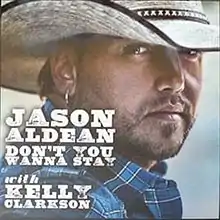 "Don't You Wanna Stay" is a duet recorded by American singers Jason Aldean and Kelly Clarkson. It was written by Andy Gibson, Paul Jenkins, and Jason Sellers. It was released as the second single from Aldean's fourth album My Kinda Party, following Aldean's and Clarkson's performance on the 44th annual Country Music Association Awards on November 10, 2010, due to strong demands of radio stations. The song contains elements of country and pop, and its lyrics speak of the difficulties of finding and maintaining love.