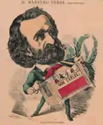 Baril Gédéon, "Il Maestro Verdi", cartoon by Le Hanneron, 14 March 1867. (Museum of the Paris Opera)