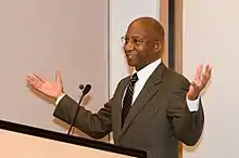 ![]() Hopkins speaking at the Center for Neighborhood Technology's MacArthur Foundation Award ceremony in 2009. | |