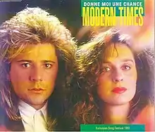 "Donne-moi une chance" (English translation: "Give me a chance") was the Luxembourgish entry in the Eurovision Song Contest 1993, performed in French and Luxembourgish by the duo Modern Times. The song was the third ever Luxembourgish entry to feature lyrics in the Luxembourgish language, in this case however only partly.