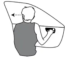 Reaching across turns one's upper body and head outward. It encourages drivers and front passengers to use the side wing mirror,[27] look out to the side and then over one's shoulder to scan for traffic before opening.[28] Once the door is partly opened, as one leans out one's over-the-shoulder view is now clear, no longer limited by side pillar (car) or door frame.[29][30] As a further safe-guard against dooring, reaching across curbs wide, sudden opening.[31]