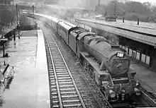 Dore and Totley became south Sheffield's only remaining station after the Beeching cuts in the 1960s saw Beauchief, Millhouses and Heeley stations all close. The station was closed to main line traffic and became an unstaffed halt in 1969. It was renamed Dore on 18 March 1971.[1] Subsequently, the island and eastern platforms were demolished in the mid-1980s. Mainline services from the South therefore can no longer stop at the station and the Hope Valley Line now runs single-track (it was singled in March 1985) through the station, with trains in both directions stopping at the one remaining platform. The photograph (right) is taken from the north and shows the remaining platform on the Hope Valley line and none on the main line.