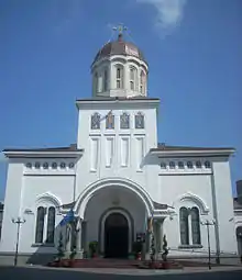 Although not yet the seat of a bishop, the church was called a cathedral from early on. It is referred to as a cathedral in an 1856 letter from the Russian Consulate at Galaţi to the Wallachian Secretariat of State regarding the donation of General Soimonov's widow. A 1935 document by Patriarch Miron Cristea also calls it a cathedral. It officially became a cathedral on 9 April 2006, when Ambrozie Meleacă was enthroned as the first bishop of the new Giurgiu Diocese.[1] At the time, he received from Greece a small box containing relics of Saint George; this was stolen the following year,[2] while in 2008, the zinc roof was replaced with a copper one, the floors replaced and an entrance ramp installed.[3]