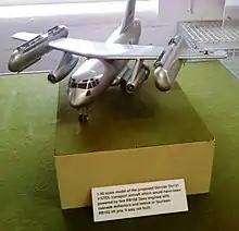 As early as 1959, West German aircraft manufacturer Dornier had been informally working on several VTOL-related concepts,[3] although it would not be until 1961 that the design team would formalise what would become the Do 31.[4] Early activity centred around a series of studies on the topic of a VTOL-capable utility transport aircraft. Dornier's design team, based at the company's facility in Friedrichshafen, was headed by the aeronautical engineer Gustav Wieland. Already at this stage, Dornier was liaising with foreign companies, including British engine manufacturer Bristol Siddeley, who were independently working on their own VTOL-orientated engine already.[3]